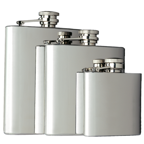 Pocket Flask, 8 oz., 3-3/4"W x 3/4"D x 5-1/8"H, captive-top, stainless steel (premium carded)
