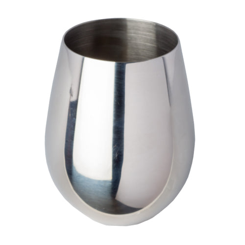 Wine Glass, 18 oz., 3-1/2" dia. x 4-1/2"H, round, stemless, 1mm thick, stainless steel, brushed interior finish, high luster exterior finish (factory box)