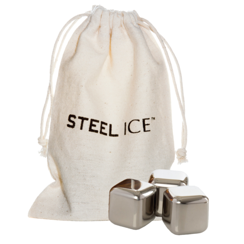 Steel-Ice™ Mini Cube Set includes: (3) 1" square cubes (8175), (1) cotton sack with pull strings (bulk pack)