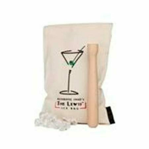 The Lewis™ Ice Bag Set, includes: (1) 7-1/2"W x 10-3/4"H canvas ice bag (8189) and (1) muddler (8192), recipes & instructions (retail box)