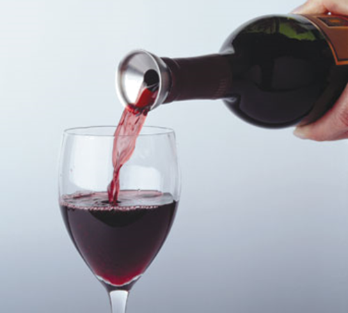 Bottle Pourer, 1-1/4" dia. x 2-7/8" long, drip free, silicone sleeve, with rubber stopper, stainless steel, silver (premium carded)