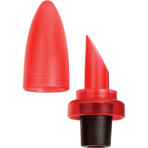 Snap-Seal Bottle Pourer, 3-1/4" overall, with lid, rounded conical shape, black rubber insert base, thermal plastic (premium carded)