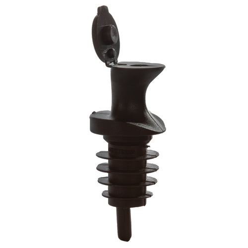 Liquor Bottle Pour & Seal™ Pourer, 2-5/8" long, free flow, without collar, hinged sealing lid, plastic, black (premium carded)