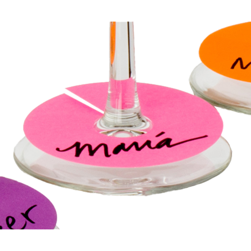Wine Glass Tags, 2-3/4" dia., round, 30% recycled material, paper, (6) neon colors, Green Seal Certified (240 per pack) (bulk pack)