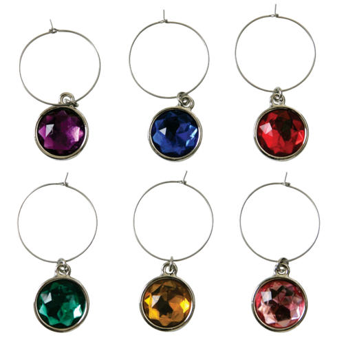 Wine Gem Charms, 5/8"W glass charms, purple, red, blue, green, orange & pink (6 each per set) (premium carded)