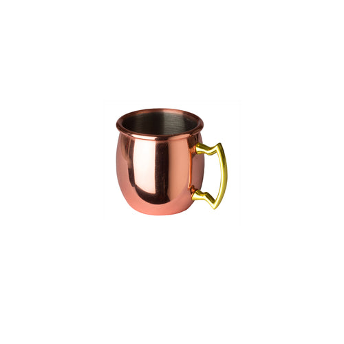 Miniature Moscow Mule Shot Mug, 2 oz., 1-3/4"H, hand wash, brushed stainless steel interior, polished copper plated exterior