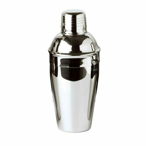 Tavern Cocktail Shaker Set, 3-piece, includes: (1) 18 oz., 3-1/2" dia. x 7-7/8"H, round shaker, (1) strainer and (1) jigger cap, stainless steel (retail box)