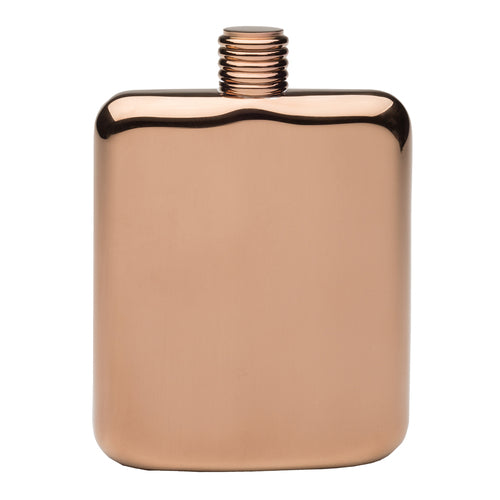 Pocket Flask, 6 oz., 3-5/8"W x 5"H, sleek line, ridged screw top, stainless steel, copper plated (factory box)