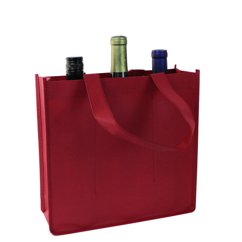 Vino Sack™ Wine Tote, 10-3/4"L x 3-1/2"W x 10-3/4"H, holds (3) .75 or 1.5 L bottles, sewn partitions, 120 gsm non-woven material, specify color