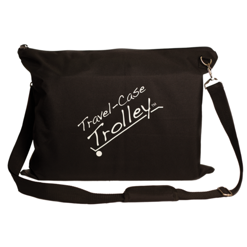 Travel-Case Trolley™ Luggage/Carrier, multi-use, collapsible, 20" x 16" x 3-1/2" (collapsed), zip on sleeve, adjustable pull straps, tag, (2) rear wheels fixed, (2) front wheels swivel, polyester, black (retail box)