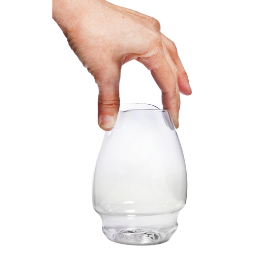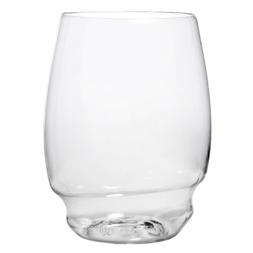 PrestoFlex® Wine Glass, 16 oz., 3-1/4" dia. x 4-3/8"H, round, stemless, 2 oz. line, break resistant, flexible, 100% recyclable, hand wash, contoured finger grip at base, BPA free, PETG thermoplastic, clear (bulk pack)