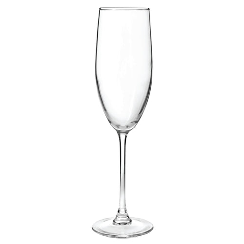 Meritus™ Champagne Glass, 8 oz., 2" dia. x 9-1/2"H, with stem, flute style, rolled edge, lead-free, glass, clear, Made in the USA (bulk pack) (Must Purchase in Case Pack)