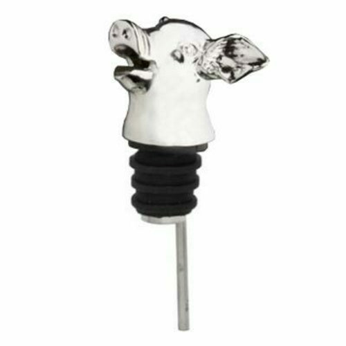Heads-Up! Aerator Bottle Pourer, pig design, zinc alloy, nickel plated, silver (fits most bottles) (retail box)