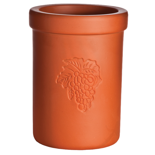 Tuscan Wine/Champagne Bottle Cooler, (1) bottle capacity, short, 5" dia. x 6-1/2"H, round, grape design, ceramic, terra cotta (retail box)