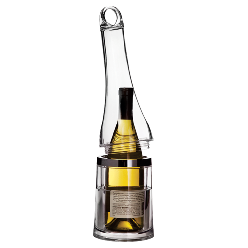 Portage Deluxe Wine/Champagne Bottle Cooler, (1) bottle capacity, portable, 18"H overall, round, screw top dome, coolant filled base, loop top handle, acrylic, clear (retail box)