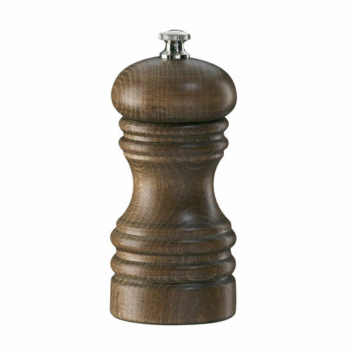 Berlin Pepper Mill, 4-3/4"H, 6-position dial adjustable from coarse to fine, German ceramic grinder, corrosion free, hand-wash only, beechwood, dark stained, Zassenhaus, Made in Germany