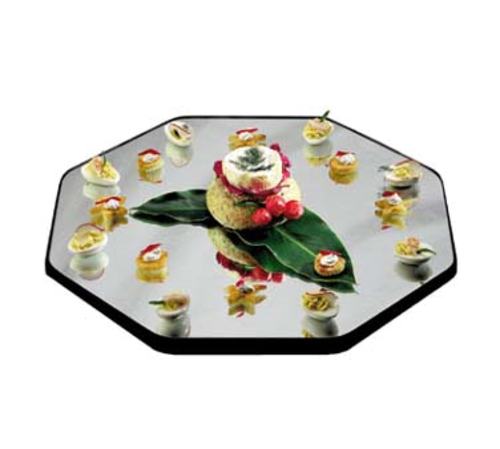 Mirror Tray, octagonal, 15" dia., rimless, 1/4" plate glass with wood backing, black vinyl edges, Made in USA (by Lakeside)