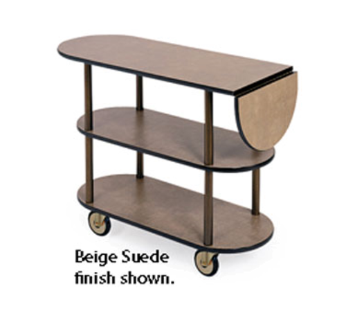 Service Cart, oval, 48"W x 16"D x 35-1/4"H, (3) open shelves, 10" drop leaf, high impact edge molding, 1-1/2" steel tube legs, 4" swivel casters, Made in USA (by Lakeside)