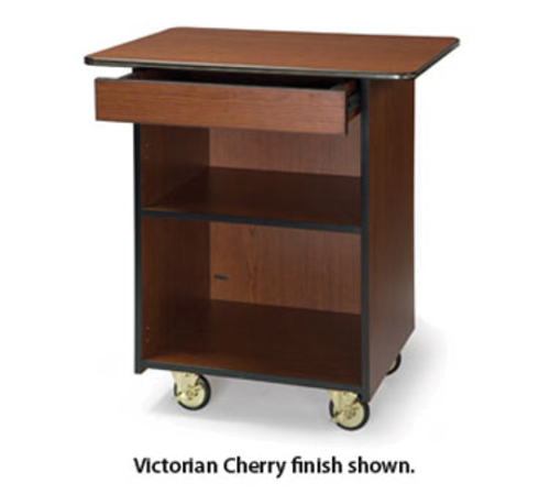 Compact Service Cart, enclosed, 33-1/2"W x 25-1/2"D x 36-3/4"H OA, 23"W interior, (1) compartment, (1) fixed shelf, drawer, high impact edge trim, laminate construction, 4" swivel casters, Made in USA (by Lakeside)