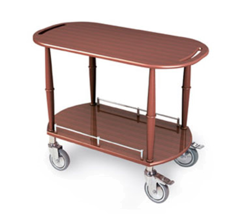 Gueridon Spice Cart, 35-1/2"W x 17-3/4"D x 29"H, oval shaped top, (1) shelf, handle cutouts on top shelf, solid beech wood stained & varnished legs, 304 stainless steel rails, wood veneer overlay construction with satin varnish finish, 5" non-marking casters (2 with brakes) (by Lakeside)