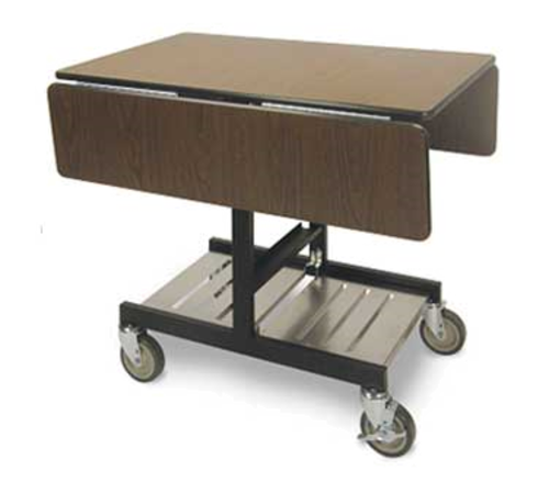 Classic Series Room Service Table, rectangle, bi-fold, 40"W x 36"D x 31"H, (flip top nested storage 24-1/2"W x 30-3/4"D x 50-1/2"H), food carrier box platforms, mahogany woodgrain laminate top , square-tubed frame, powder coat black frame, 5" casters (2 with brakes), Made in USA