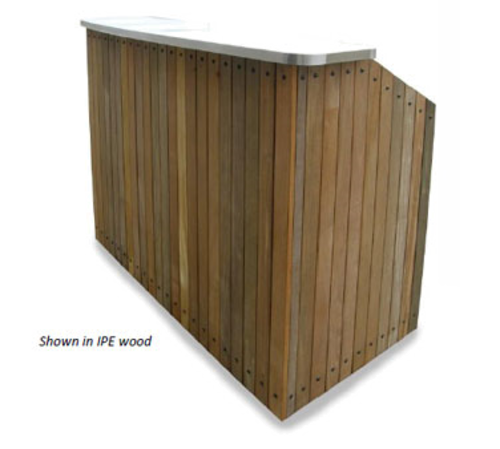 Chalet Portable Bar, 96"W x 30"D x 47-1/2H", stainless steel interior, IPE wood exterior, (1) 50 lb. ice bin, (2) 7 bottle speed rails, 5" casters (4 swivel, 2 lock, 2 rigid), Made in USA (by Lakeside)