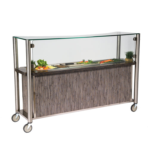 Action Station, 52-1/2"W x 20"D x 34"H, including dropleaf, rectangular HDPE top, stainless steel ingredient top bin, lower cavity with laminate interior, food shield, laminate exterior, (2) 1800 watt induction cooking ranges, stainless steel tubular legs, 5" casters (2 with brakes), Made in USA (contact factory for price)