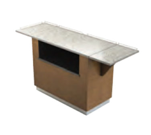 Dining Cart, portable, 87-1/4"W x 32-1/2"D x 38"H, including (2) 16" drop leaves, top railing on 3 sides, recessed plate storage, wood veneer overlay, solid surface top, 4" recessed casters (2 fixed, 2 swivel), Made in USA (by Lakeside) (contact factory for price)