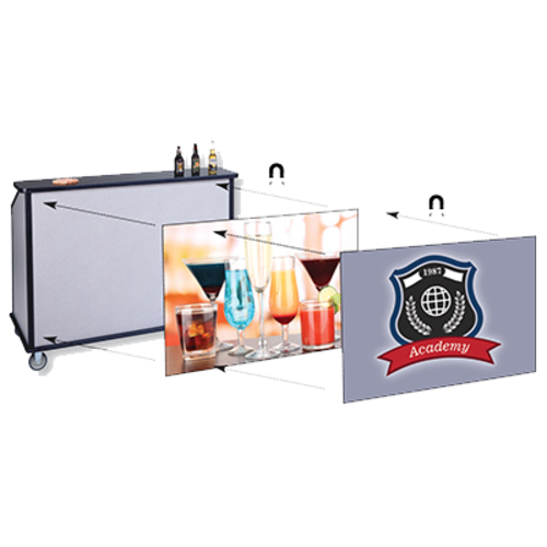 Magnetic Signage, 32"W x 36"H, adheres to bars with stainless steel front panels or stainless steel front panels wrapped in walnut or black vinyl finishes only (will not work with bars wrapped with other available finishes), contact factory for details and assistance to create custom graphic signage, Made in USA