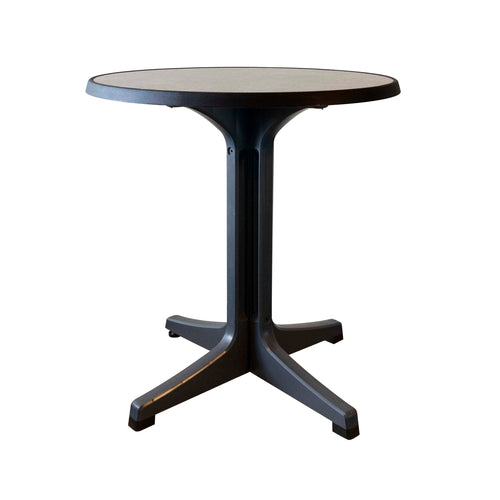 Omega Table, 28" dia., round, dining height, metal brushed tabletop with charcoal resin edge, scratch, abrasion, impact, weather, and UV resistant, designed for indoor/outdoor use, charcoal resin alpha base, Made in Germany (priced per each, packed 1 each per case)