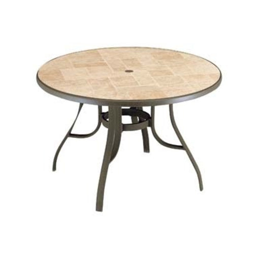 Louisiana Outdoor Pedestal Table, 48", round, with umbrella hole, resin top with block design, wide 4-prong base & leg levelers, metal legs, power washable, UV resistant, recyclable, bronze mist with toscana decor, Made in USA