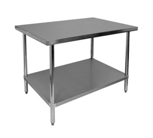 Premium Work Table, 30"W x 30"D x 35"H, 16/201 stainless steel top, 18/430 stainless steel undershelf, stainless steel legs with adjustable ABS bullet feet, rolled edge construction, ETL