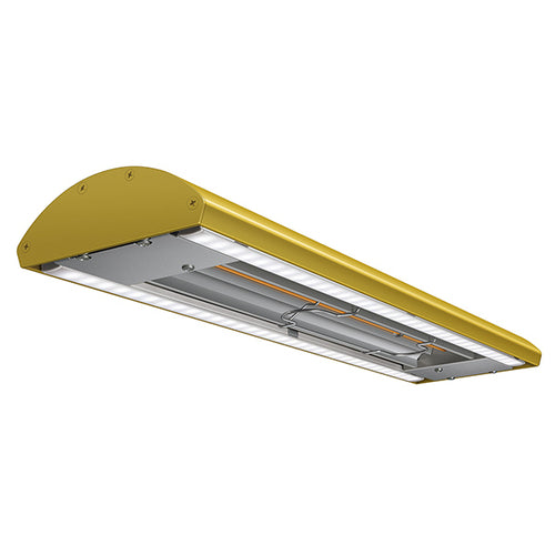 Glo-Ray® Infrared Strip Heater, curved, 18" W, standard watt, dual LED lights, remote box with electronic infinite control, power on/off switch, mounting brackets, 254 watts