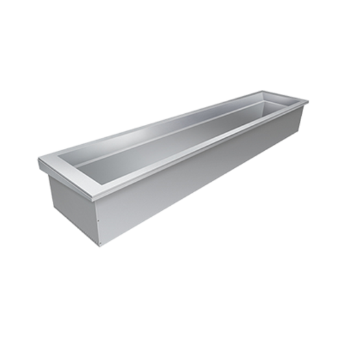 Drop-In Slim Cold Food Unit, iced cold pan, 90-1/4"L x 19"D, (4) pan size (pans not included), insulated, bezel design, 1" brass drain with screen, stainless steel construction, Made in USA