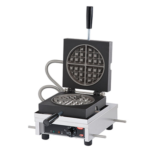 Hatco®/Krampouz® Belgian Waffle Baker, single, electric, makes (1) round waffle, hinged 90°, removable cast iron plates, 120°-570°F temperature control, includes drip tray, stainless steel frame, cETLus, ETL-Sanitation