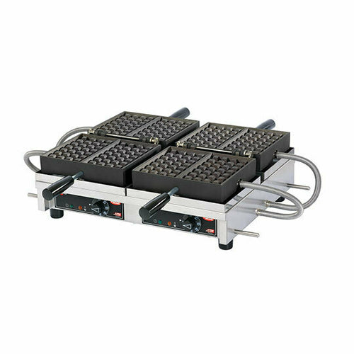 (QUICK SHIP MODEL) Hatco®/Krampouz® Belgian Waffle Maker, double, electric, makes (2) 7" Liege Waffle, rotates 180°, removable cast iron plates, 120°-570°F temperature control, includes drip tray, stainless steel frame, cETLus, ETL-Sanitation