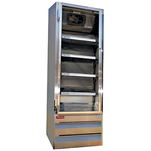 Freezer Frozen Foods Merchandiser, one-section, 19 cu. ft. capacity, bottom mount self-contained refrigeration, hinged glass door, (4) epoxy coated shelves, electronic controls, automatic defrost, LED lighting, stainless steel exterior & interior, 1/2 HP, 115v/60/1-ph, 16.0 amps, cord, NEMA 5-20P, cULus, UL EPH Classified, UL-Sanitation