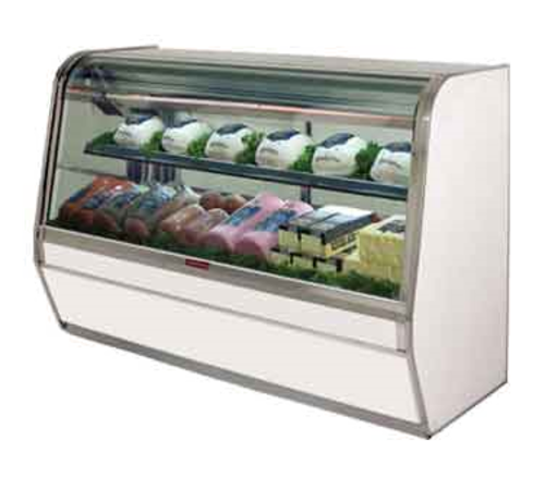 Curved Glass Deli Meat & Cheese Service Case, 98"W, single duty, endless design look, full length gravity coil system, (1) adjustable mezzanine shelf, white exterior & white interior, designed for remote refrigeration, R448A expansion valve included, remote condensing units & other hook ups are not included, 115v/60/1-ph, LED lighting, 2.8 amps, 2800 BTU, cULus, UL EPH Classified, UL-Sanitation