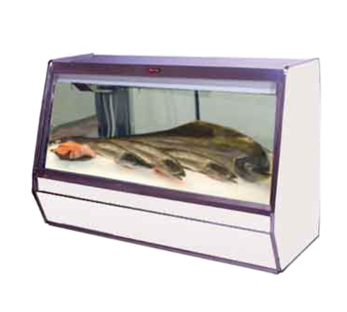 Fish/Poultry Service Case, 74"W, single duty, endless design, full length gravity coil system, (3) stainless steel ice pans with drains, stainless steel top, black exterior & white interior, designed for remote refrigeration, R448A expansion valve included, remote condensing units & other hook ups are not included, LED lighting, 115v/60/1-ph, 1.6 amps, 1230 BTU, cULus, UL EPH Classified, UL-Sanitation