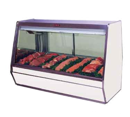 Red Meat Service Case, 50"W single duty, endless design, full length gravity coil system, extra full length humidity coil at the main deck, stainless steel top, black exterior & white interior, designed for remote refrigeration, R448A expansion valve included, remote condensing units & other hook ups are not included, 115v/60/1-ph, LED lighting, 0.8 amps, 1400 BTU, cULus, UL EPH Classified, UL-Sanitation
