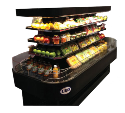 Island Open Merchandiser, 84"W x 42"D x 60"H, black exterior & interior, (3) adjustable stainless steel shelves with product stop, (4) levels of display, LED lit top and shelves, even flo air discharge for balanced temperatures, night cover included, 1-3/4 HP, 115/208-230, 16.0 amps, NEMA L14-20P,electric condensate pan,CULus, UL-EPH CLASSIFIED (Contact factory for refrigerant type), cULus, UL EPH Classified, UL-Sanitation