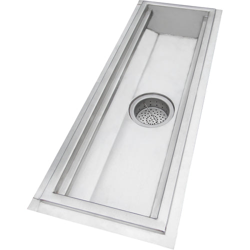 ASFT Anti-Spill Floor Trough, 348"W x 24"D x 6" deep, 14/304 stainless steel, with basket strainer, 6-1/2" waste outlet