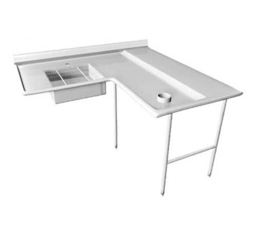 Dishtable, soiled, with pre-rinse sink & landing shelf, island style, right-to-left, 72" machine to corner, 72" corner to end, 16 gauge stainless steel top with 16 gauge stainless steel channeling, 8"H backsplash & stainless steel legs & gussets