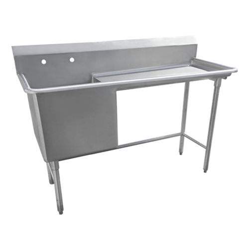 Scullery Sink, one compartment, 43"W x 24"D x 44"H overall size, (1) 20"W x 20" front-to-back x 14" deep compartment, (1) 20" right drainboard, 10"H backsplash, top & sink bowls have 3/4" coved radius, 3-1/2" drain opening, 16/300 stainless steel construction, 16 gauge stainless steel legs & gussets, adjustable feet, Made in USA