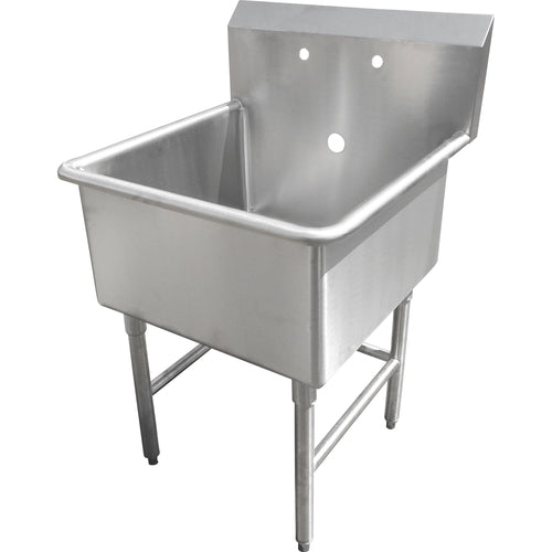 Scullery Sink, one compartment, 27"W x 32"D x 44"H overall size, (1) 20"W x 28" front-to-back x 14" deep compartment, 10"H backsplash, top & sink bowls have 3/4" coved radius, 3-1/2" drain opening, 16/300 stainless steel construction, 16 gauge stainless steel legs & gussets, adjustable feet, Made in USA