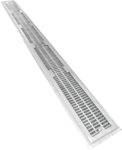 SEC-FWR Floor Water Receptacle, 24"W x 7-1/2"D, 4" deep receptacle, (1) 4" OD tailpiece, stainless steel beehive strainer, 16/304 stainless steel construction, brushed satin finish, (SG-ADA-SEC) security subway grating, NSF, Made in USA