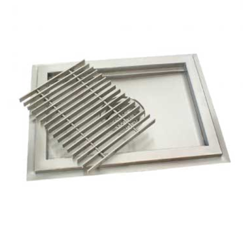 SFT Shallow Floor Trough, 144"W x 18"D x 2" deep, 14/304 stainless steel, with drain & (SG-ADA) subway grating