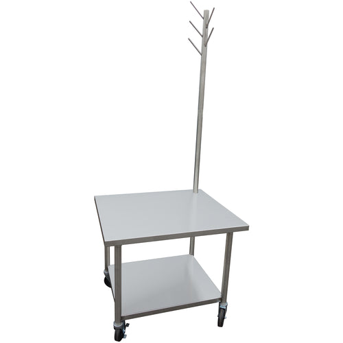 Mixer Stand with Tool Tree, 30"D x 30"W x 30"H base, 40"H tool tree, with undershelf, 14/300 stainless steel, (4) 5" swivel casters (2 with brakes)