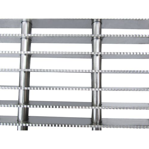 SQ Grid Floor Trough Grating, 30" wide x 120" long x 1" deep, 304 stainless steel construction (12GA .105" x 1" bars), serrated for anti-slip surface, 11/16" x 2-1/2" grids