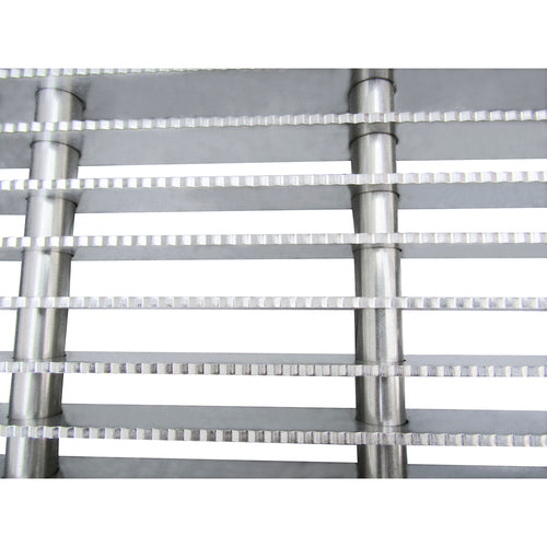 SQ-ADA Grid Floor Trough Grating, 15" wide x 96" long x 1" deep, 304 stainless steel construction (12GA .105" x 1" bars), serrated for anti-slip surface, 1/2" x 2-1/2" grids
